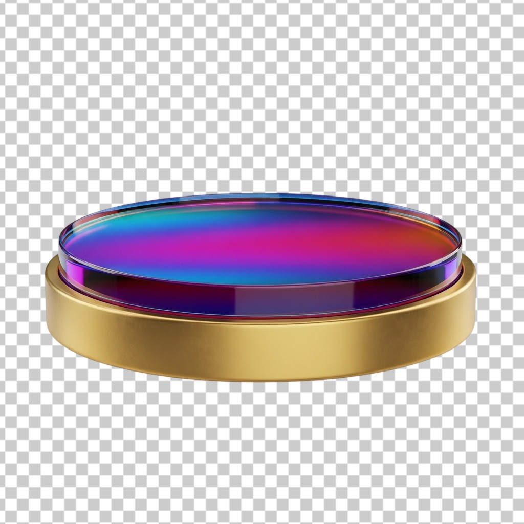 Futuristic 3D Iridescent Liquid Platform with Gold Metallic Rim PNG Transparent Background