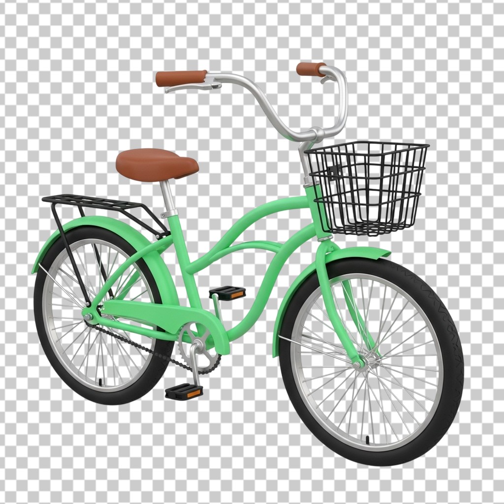 3D Green City Bicycle with Front Basket for Transportation PNG Transparent Background