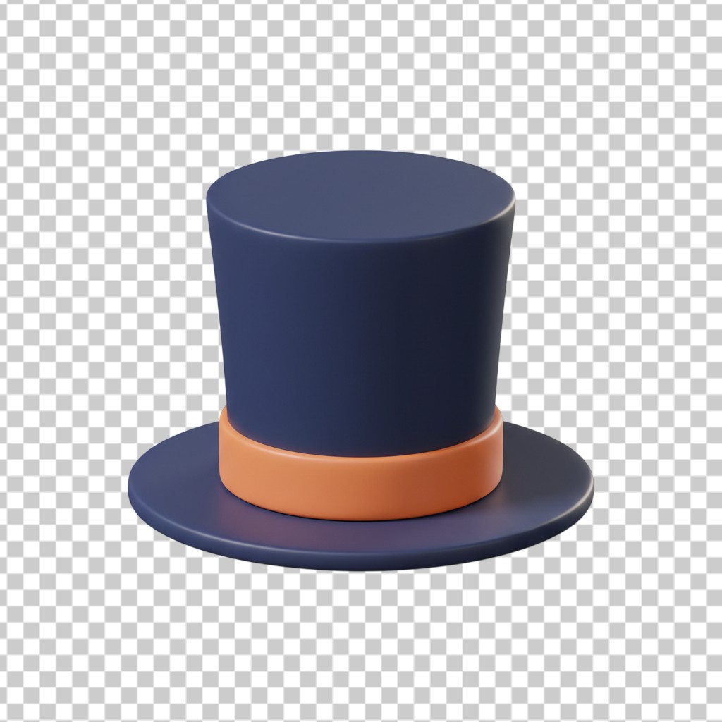 Elegant Black Top Hat with Orange Ribbon 3D Rendering PNG Transparent Background