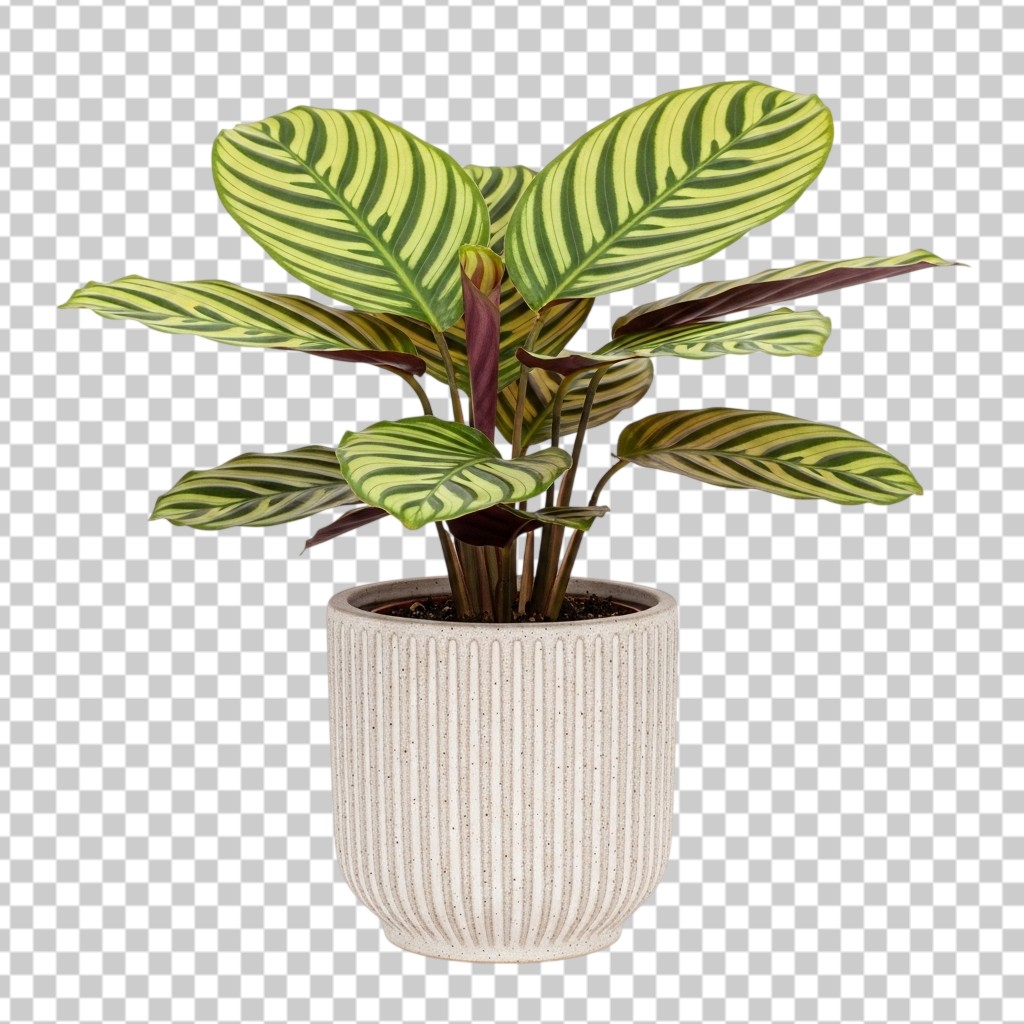 Striped Leaf Calathea Plant in Ceramic Pot PNG Transparent Background