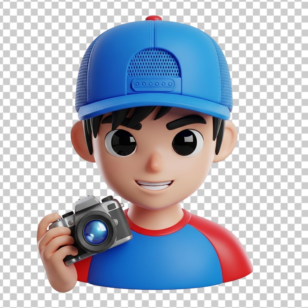 3D Boy Photographer Character Holding Professional Camera PNG Transparent Background