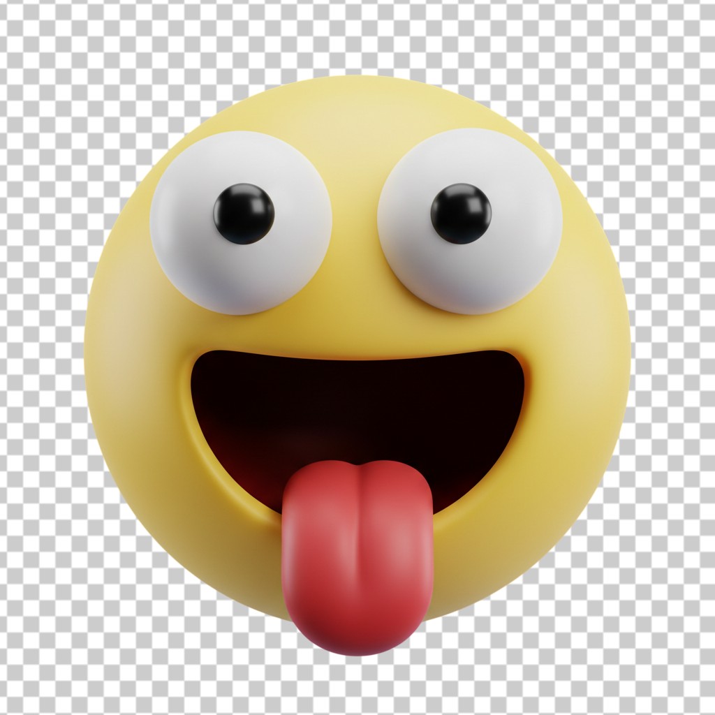 Playful Yellow 3D Emoji Face with Tongue Out and Happy Open Eyes PNG Transparent Background