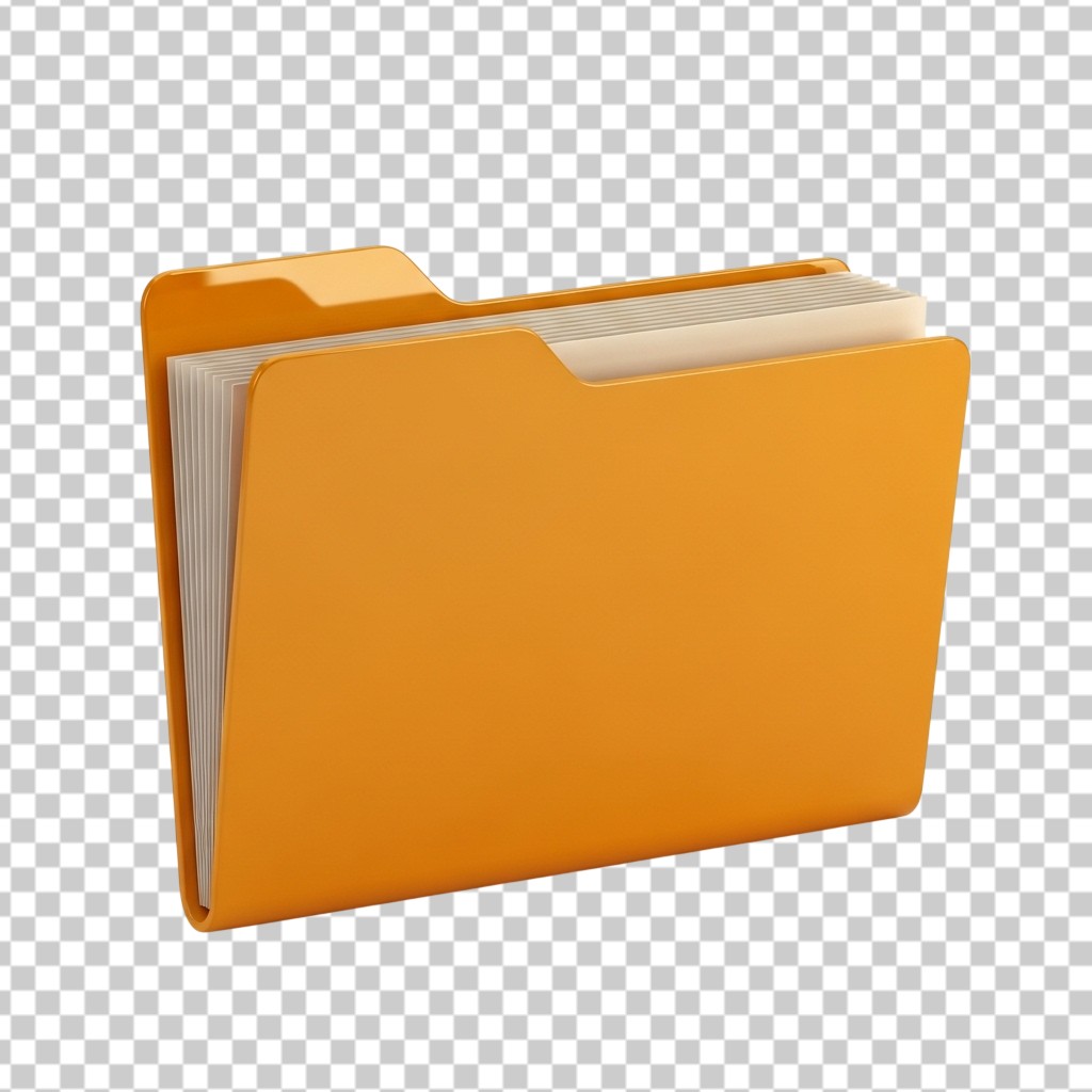 Yellow Office Folder with Documents 3D Illustration PNG Transparent Background