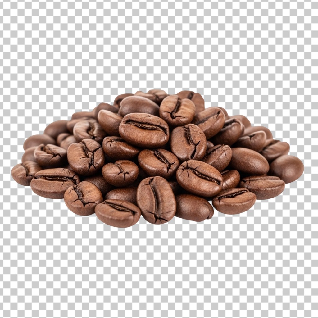 Small Pile of Roasted Brown Coffee Beans for Brewing PNG Transparent Background