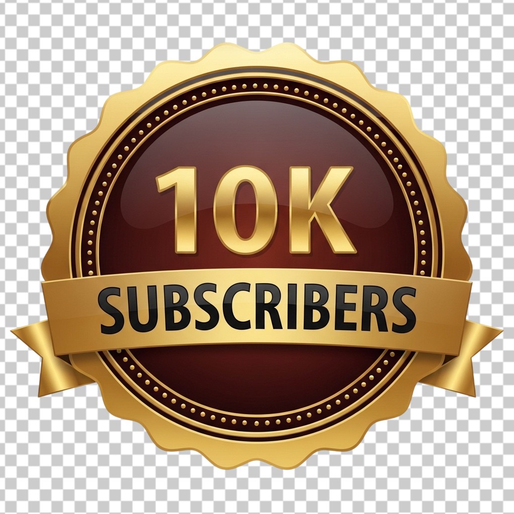Luxury Golden 10K Subscribers Milestone Badge PNG Transparent Background