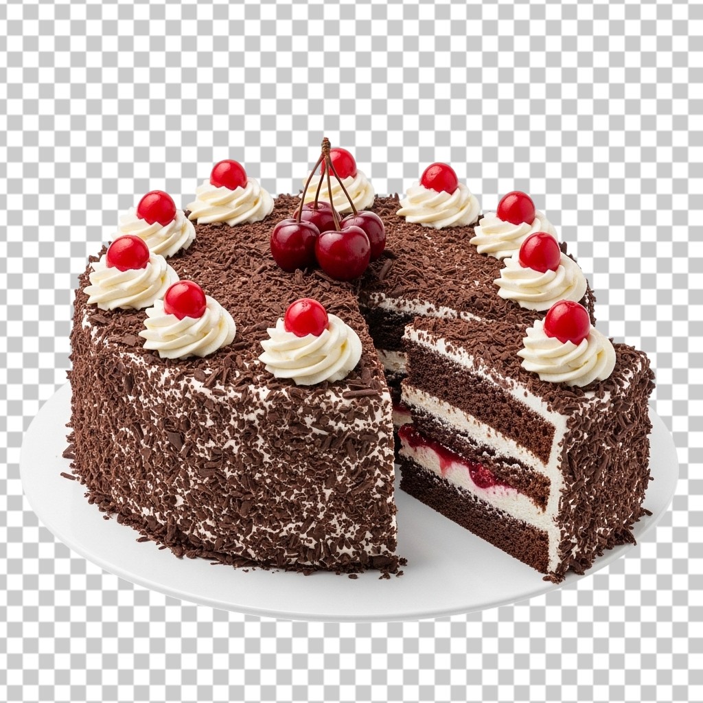 Delicious Slice of Black Forest Chocolate Cake PNG Transparent Background