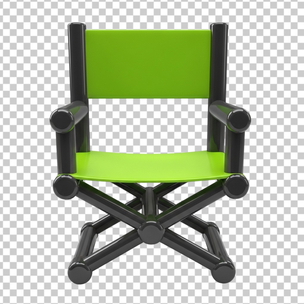 3D Green and Black Folding Director's Chair PNG Transparent Background