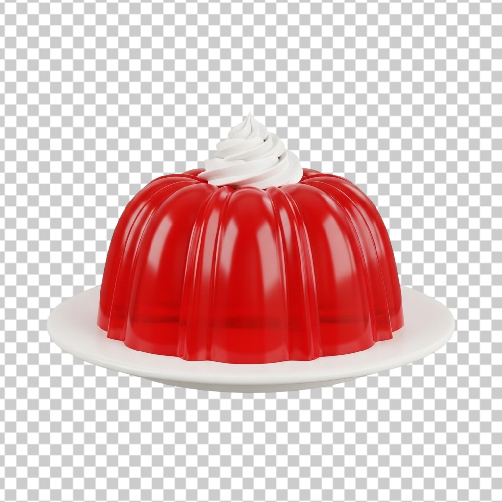3D Red Strawberry Jelly Dessert on White Plate PNG Transparent Background