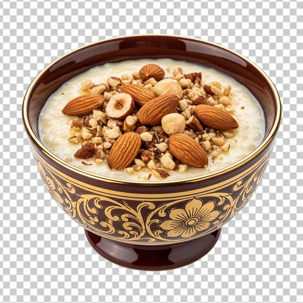 Bowl of Healthy Muesli with Nuts and Grain PNG Transparent Background