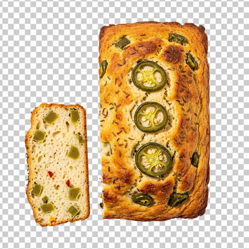 Baked Savory Bread Loaf with Olives and Jalapenos PNG Transparent Background