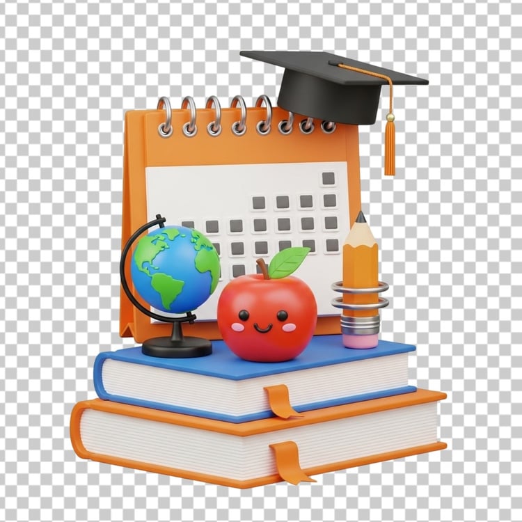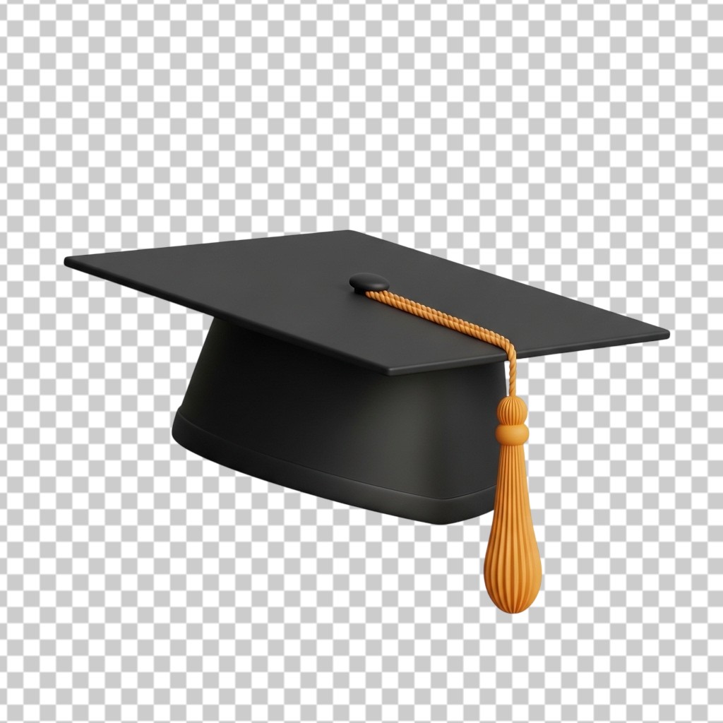 Black Academic Graduation Cap 3D Illustration PNG Transparent Background