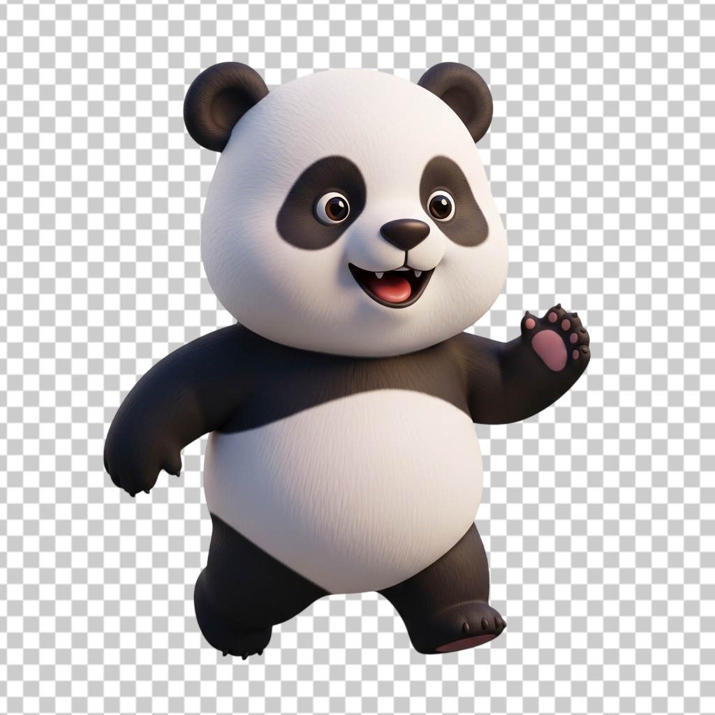 3D Cute Standing Panda Bear Animal Illustration Character PNG Transparent Background