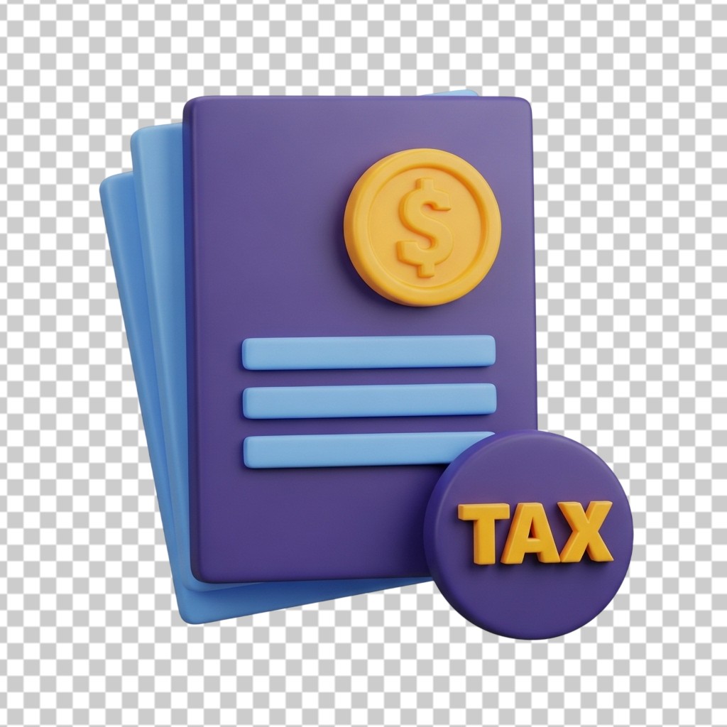 3D Tax Document Folders with Dollar Coin Icon PNG Transparent Background