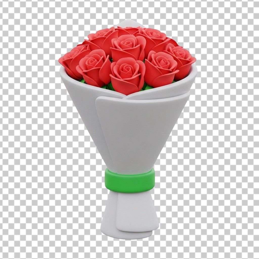 Beautiful Bouquet of Red Roses in White Wrap 3D Rendering PNG Transparent Background
