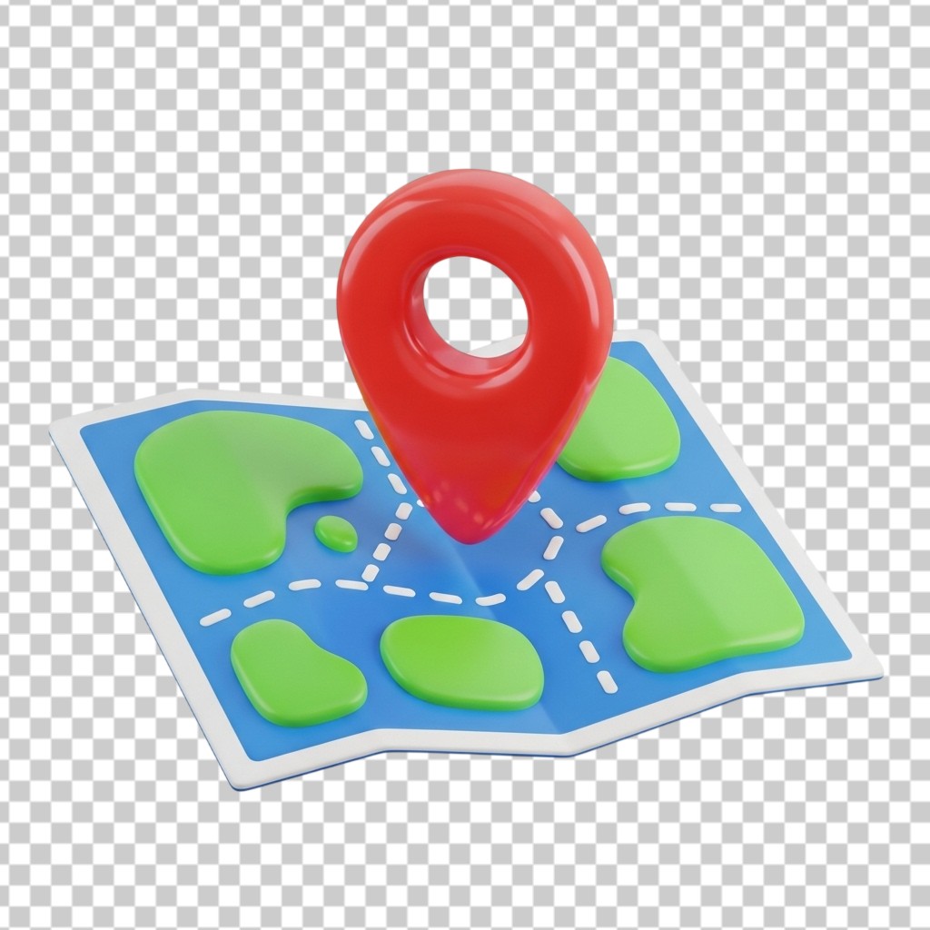 3D Navigation Map with Red Location Pin for Travel and Logistics PNG Transparent Background