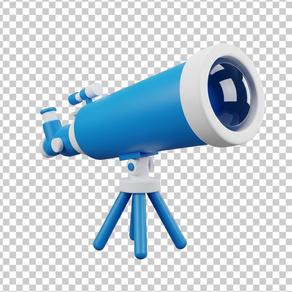 3D Blue Astronomical Telescope on Tripod PNG Transparent Background