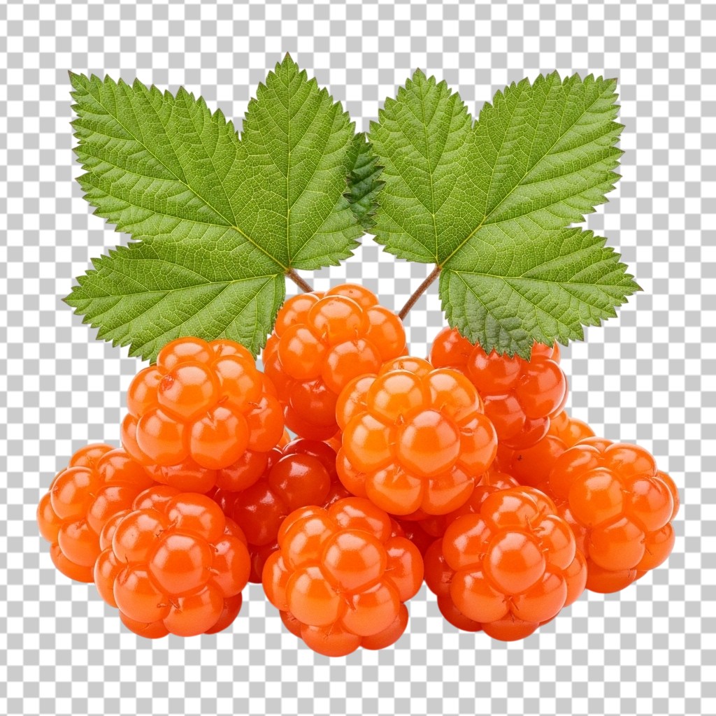 Bunch of Ripe Orange Berries with Green Leaves PNG Transparent Background