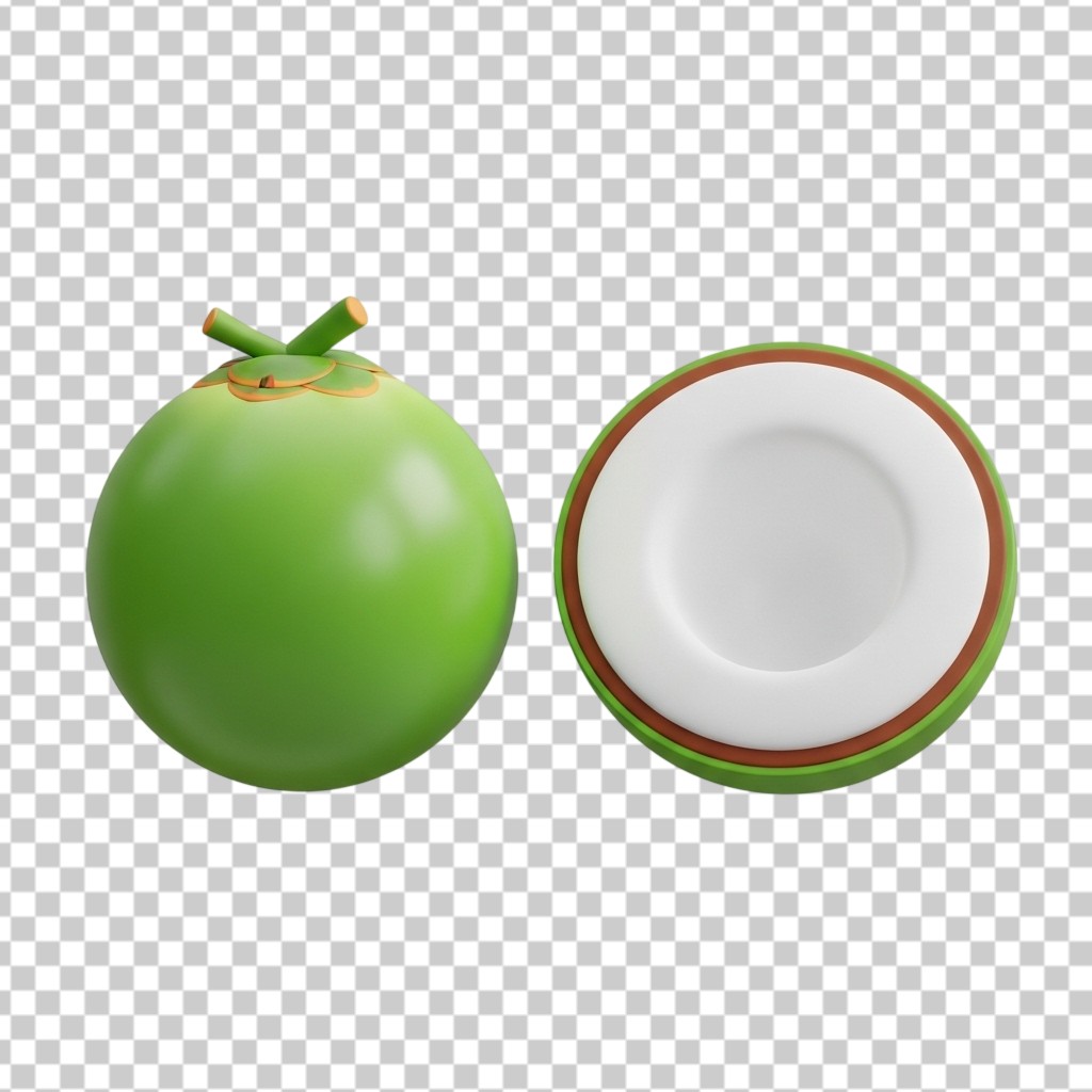 3D Fresh Green Coconut with Half Sliced Fruit Food PNG Transparent Background