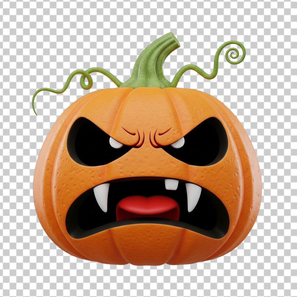 3D Scary Angry Halloween Jack-O-Lantern PNG Transparent Background