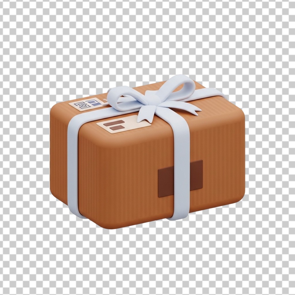 Wrapped Cardboard Gift Box with White Ribbon PNG Transparent Background