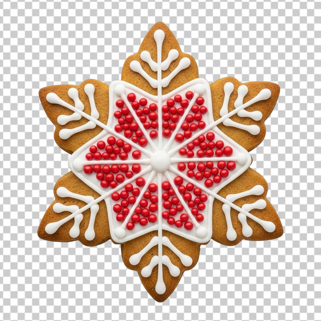 Christmas Snowflake Gingerbread Cookie with Detailed Red and White Icing PNG Transparent Background