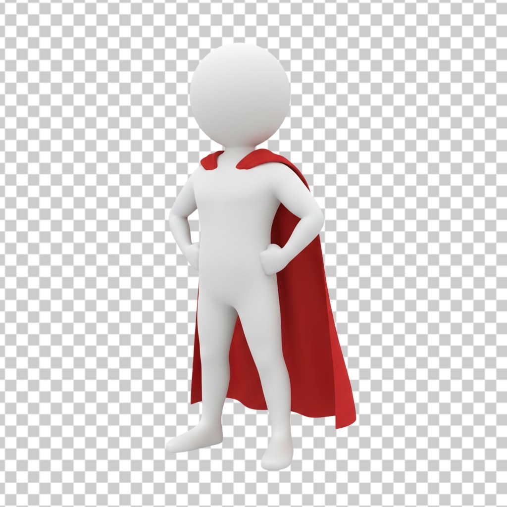 3D Small Superhero Character Standing with Red Cape PNG Transparent Background