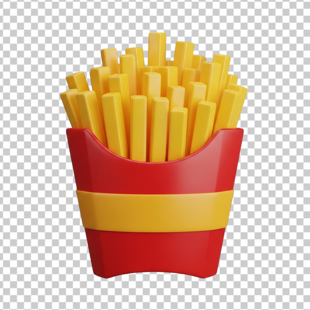 3D Red Box of Crispy Golden French Fries Fast Food PNG Transparent Background