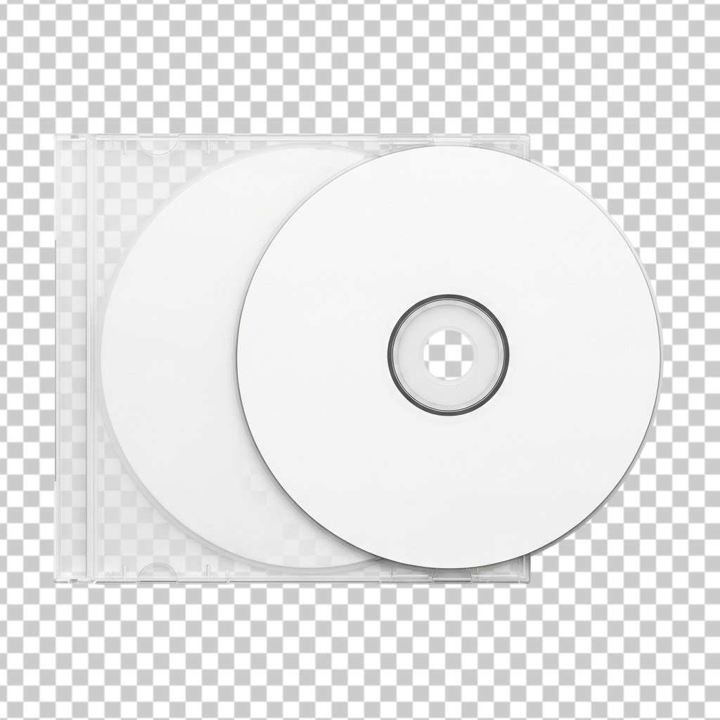 Pair of White Blank CD Discs in Plastic Case PNG Transparent Background