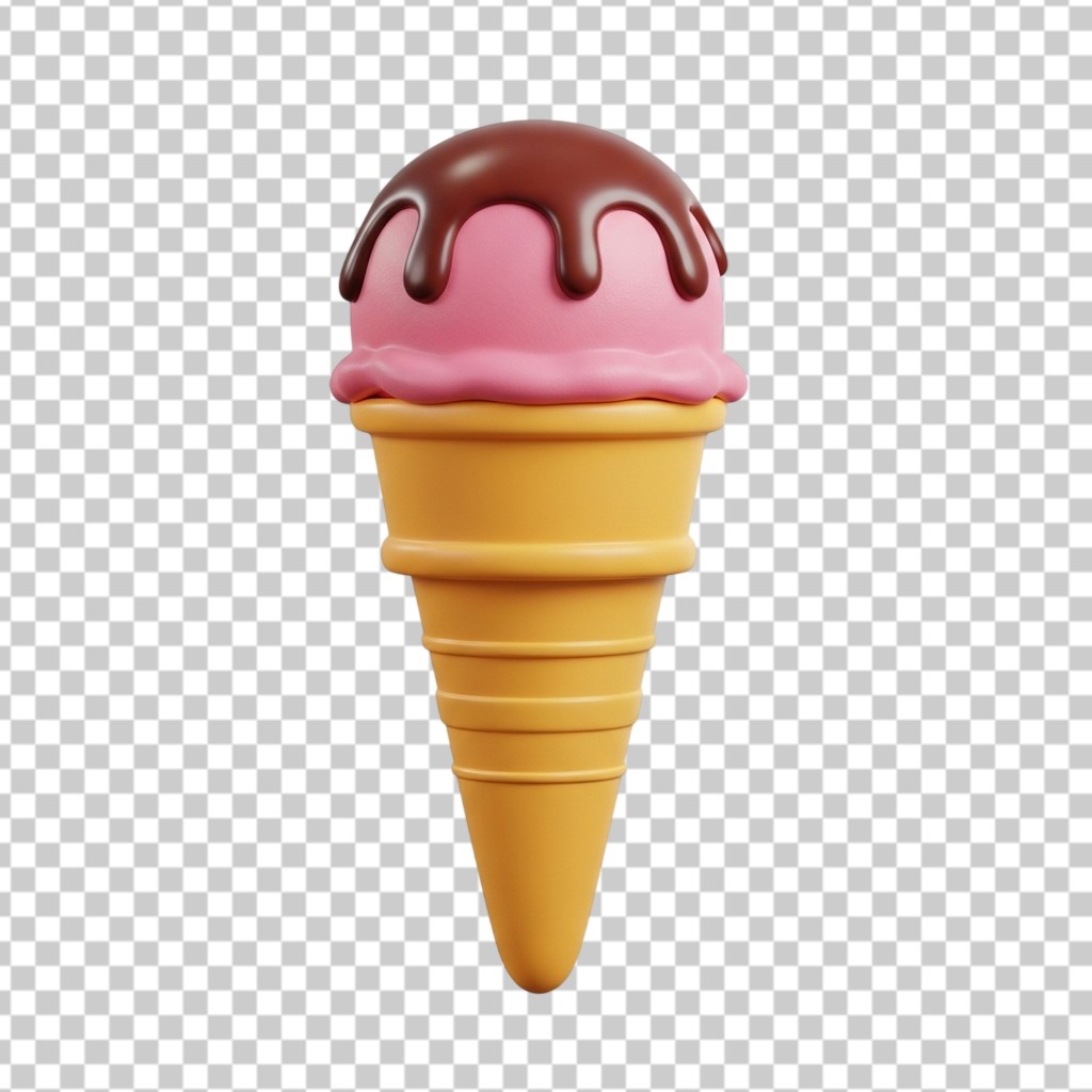 3D Pink Strawberry Cream Ice Cream Waffle Cone PNG Transparent Background