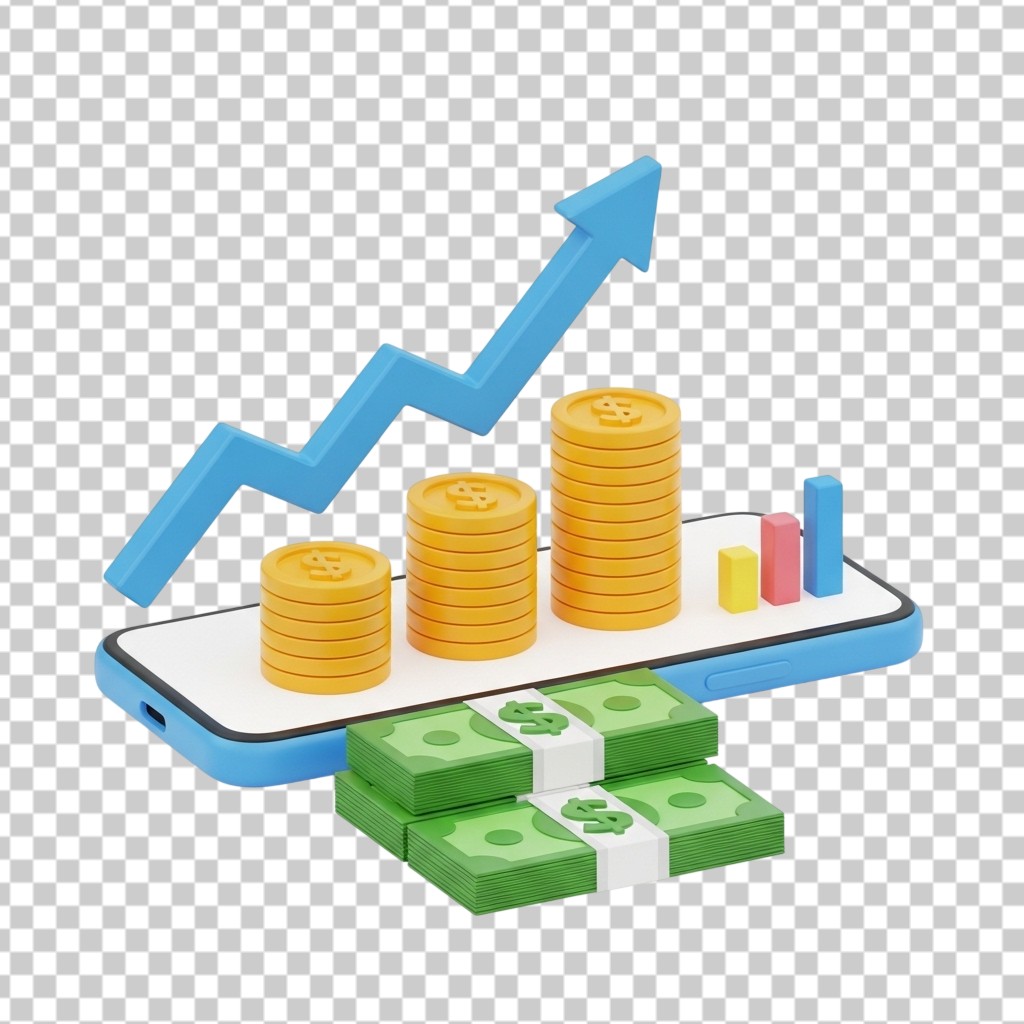 Financial Growth Concept with Money Stacks and 3D Charts PNG Transparent Background