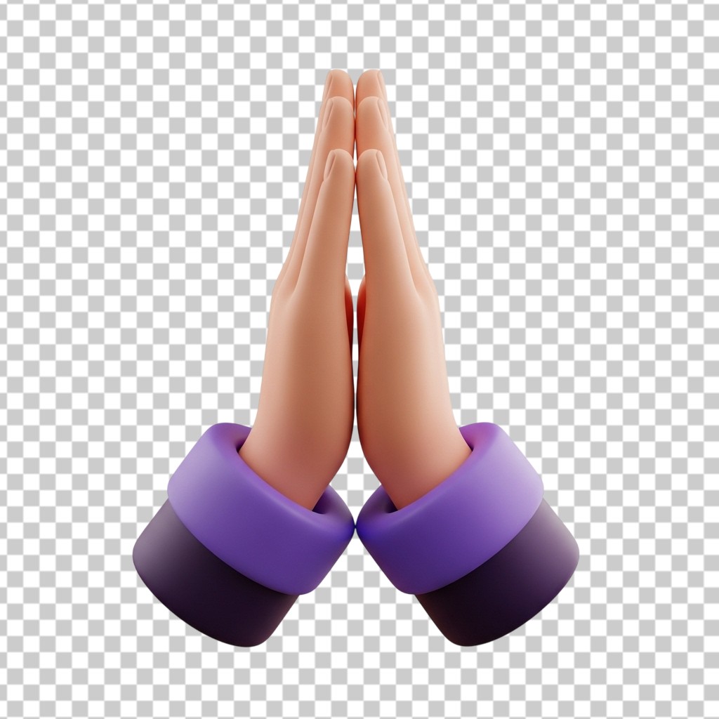3D Human Hands Folded in Prayer Position PNG Transparent Background