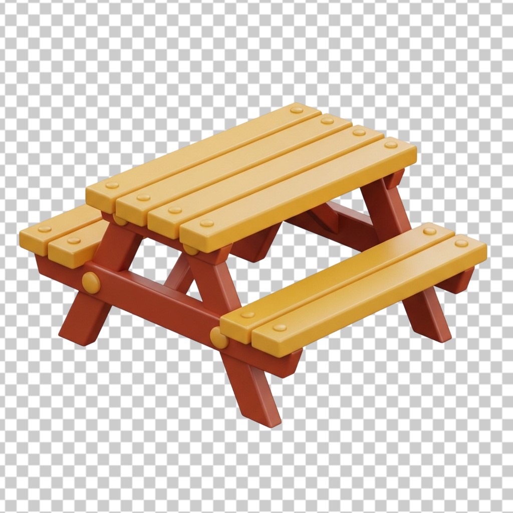 Wooden Outdoor Picnic Table with Benches 3D Rendering PNG Transparent Background