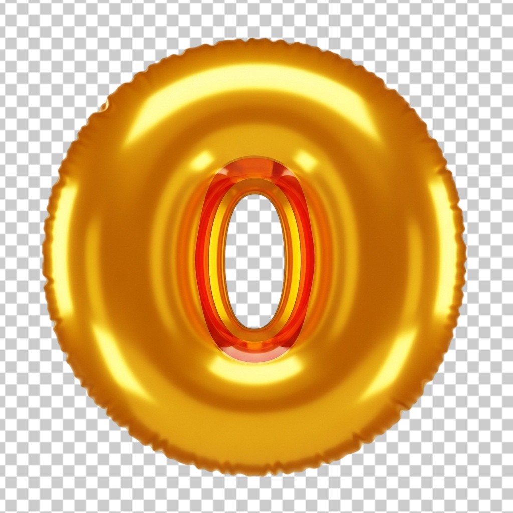 3D Golden Number 0 Foil Balloon Party Decor PNG Transparent Background