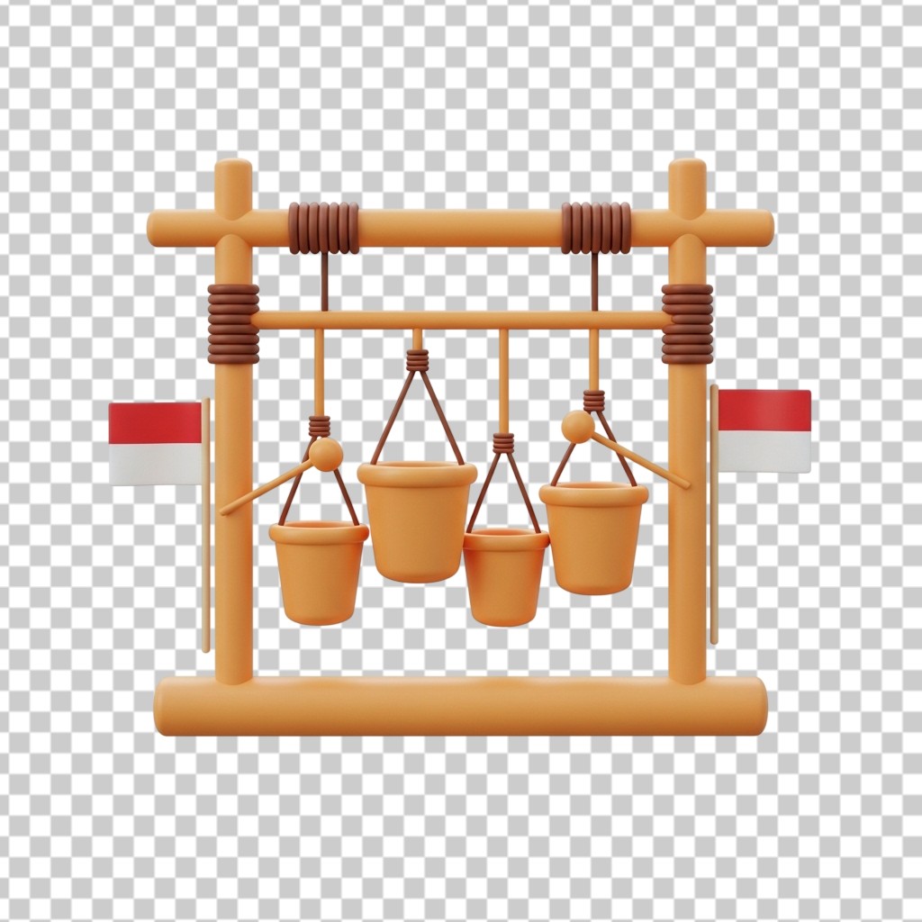 Traditional Wooden Water Well Structure with Three Hanging Buckets PNG Transparent Background