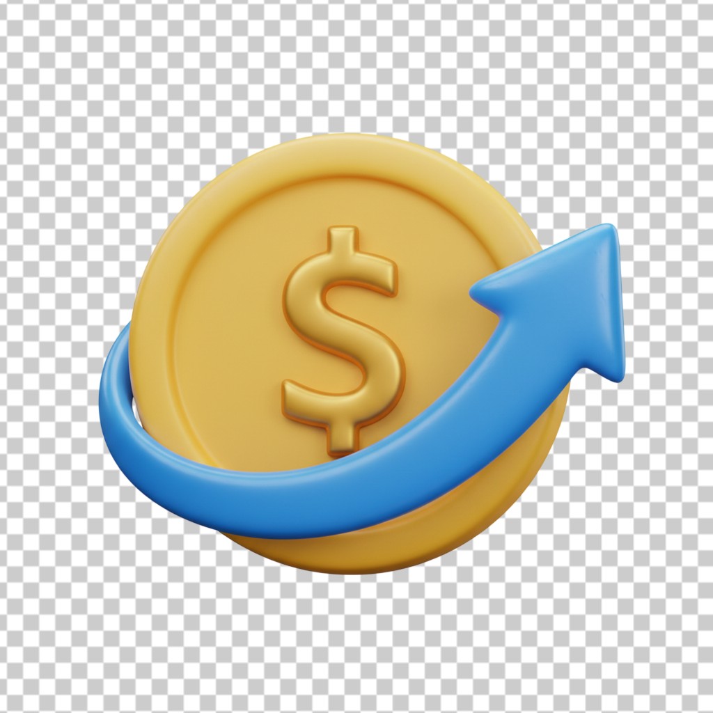 3D Gold Coin with Upward Blue Arrow PNG Transparent Background