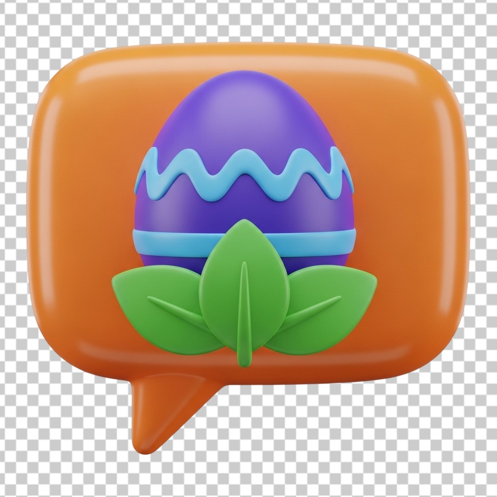 3D Speech Bubble Icon with Decorated Easter Egg PNG Transparent Background