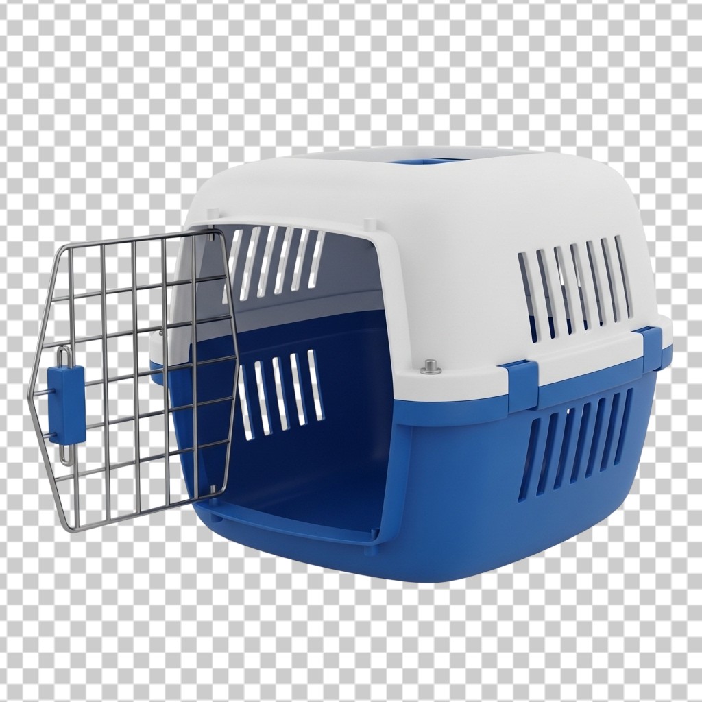 Blue and White Plastic Pet Carrier for Travel PNG Transparent Background