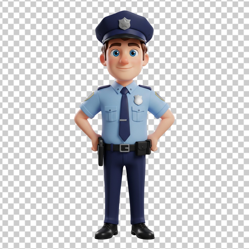 3D Male Police Officer Character in Uniform PNG Transparent Background,3D