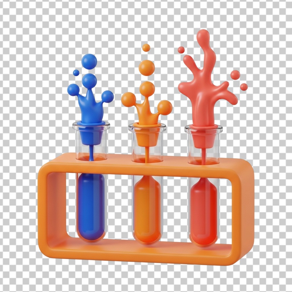 3D Science Lab Test Tubes with Colorful Liquid Splashes PNG Transparent Background