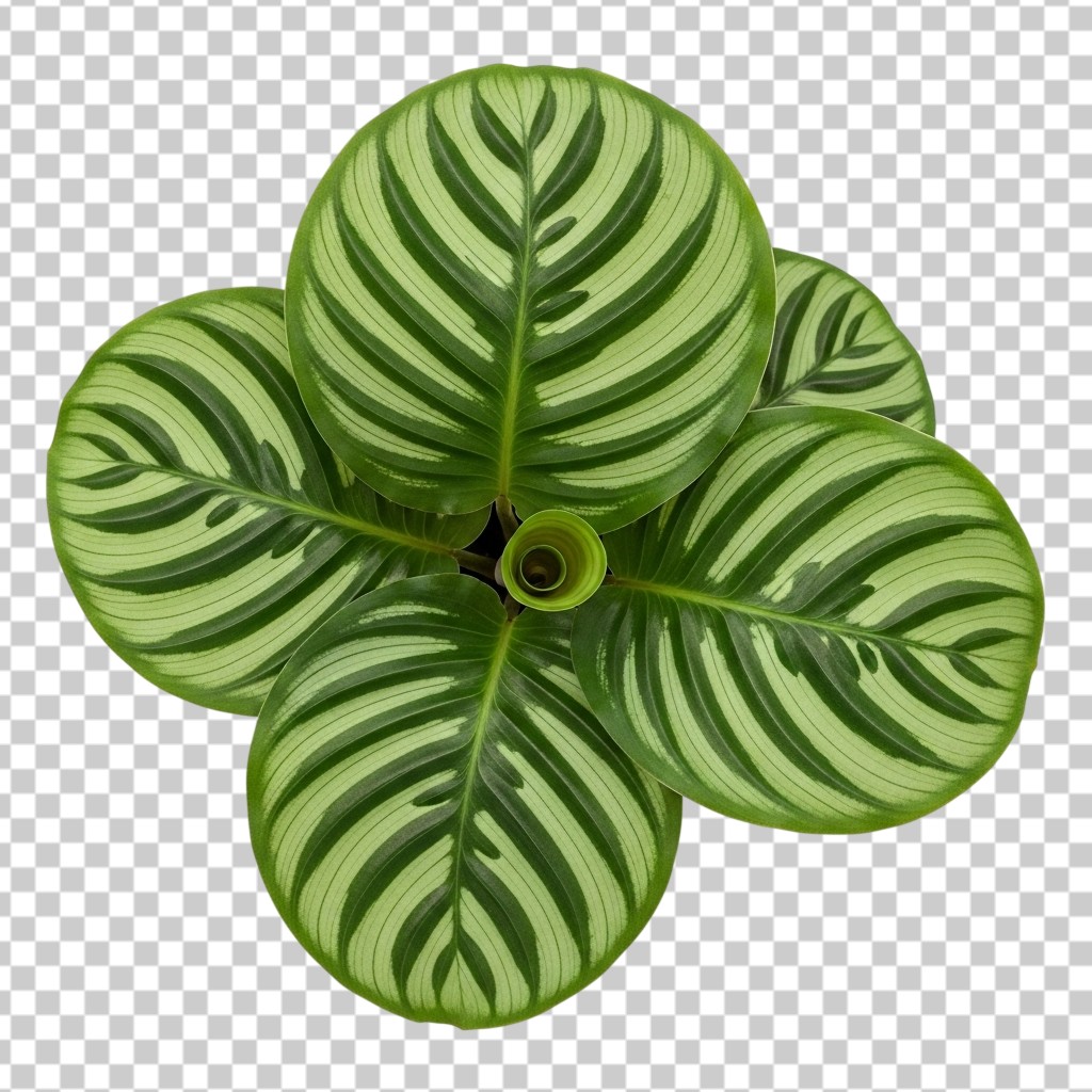 Top View of Calathea Plant with Striped Green Leaves PNG Transparent Background