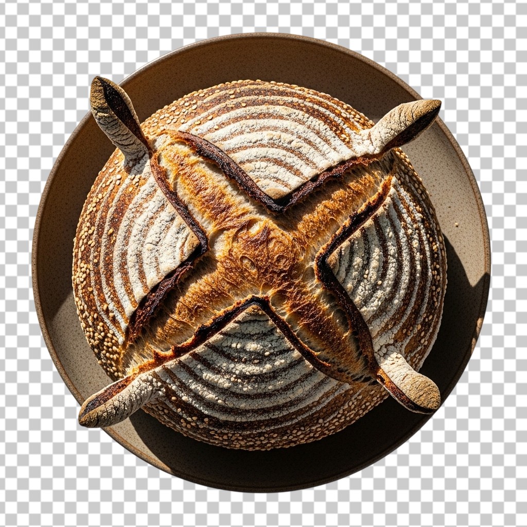 Top View of Crusty Sourdough Bread Loaf PNG Transparent Background