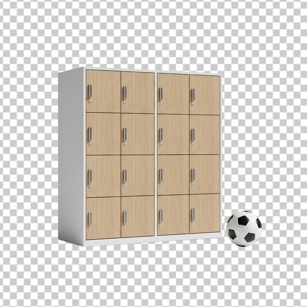 Wooden School Lockers with Soccer Ball Illustration PNG Transparent Background