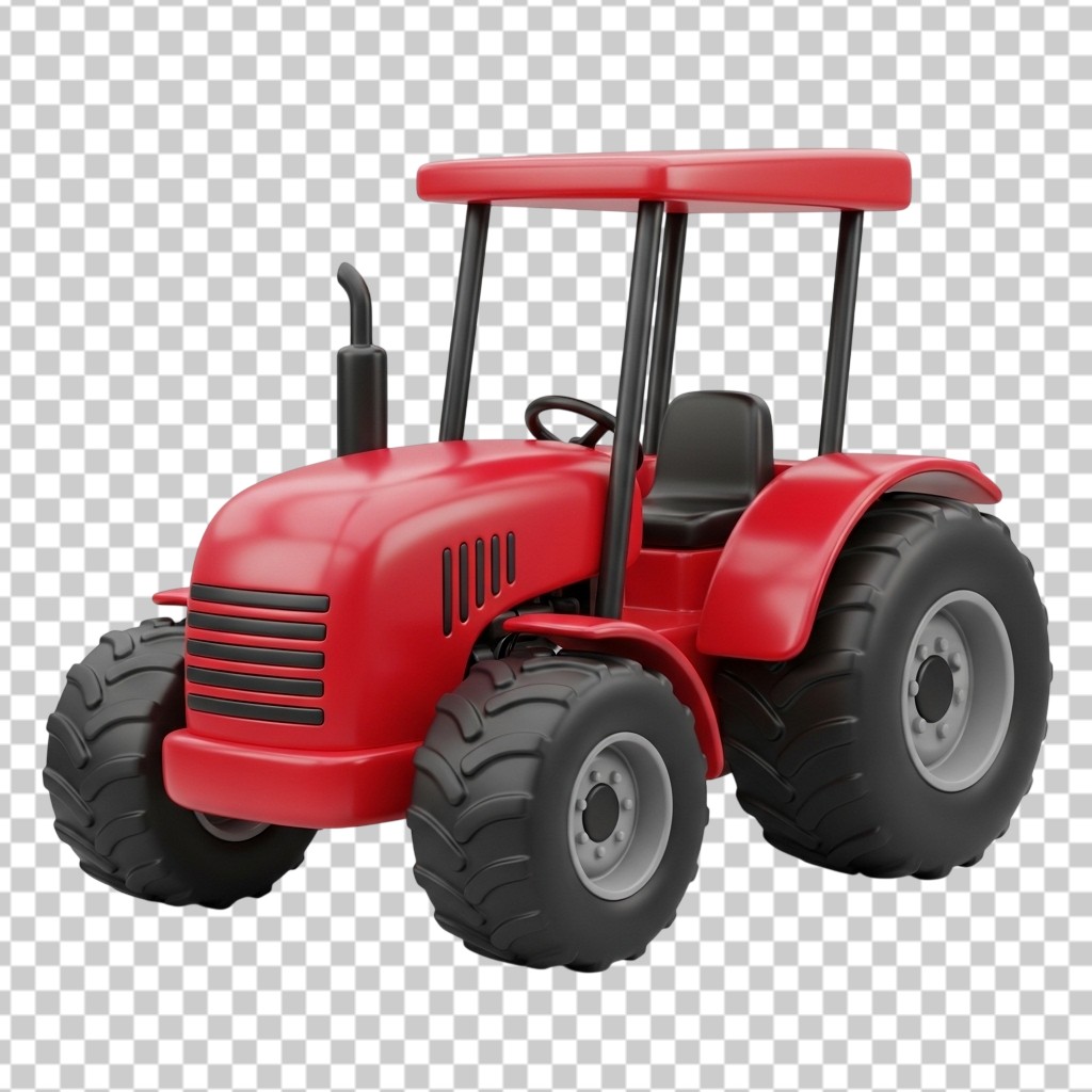3D Red Farm Tractor Agricultural Vehicle Illustration PNG Transparent Background
