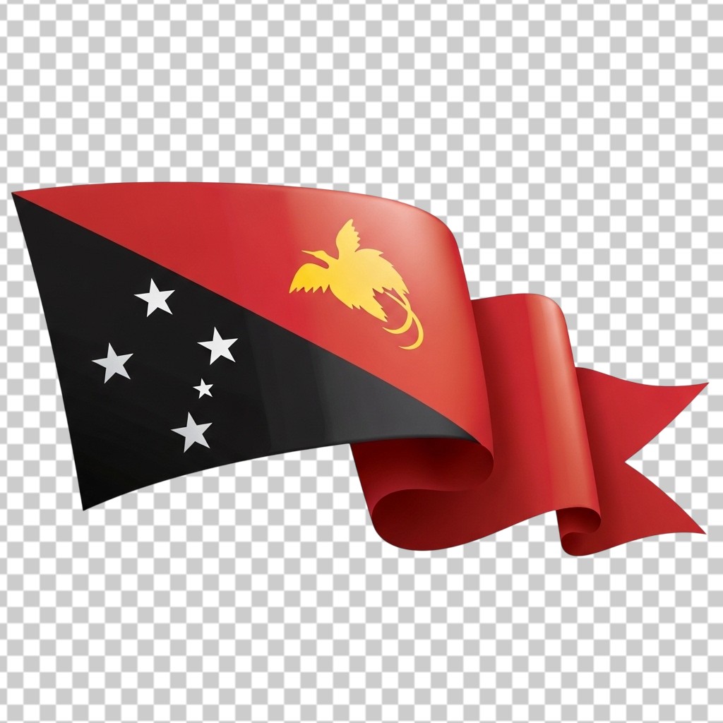 Waving Ribbon Flag of Papua New Guinea Illustration PNG Transparent Background