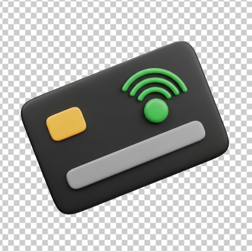 3D Contactless Credit Card for Secure Electronic Payments PNG Transparent Background