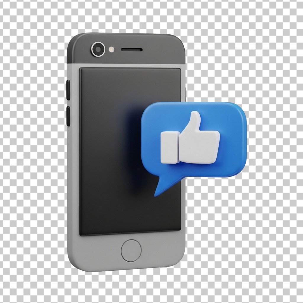 Smartphone with 3D Blue Like Notification Bubble PNG Transparent Background
