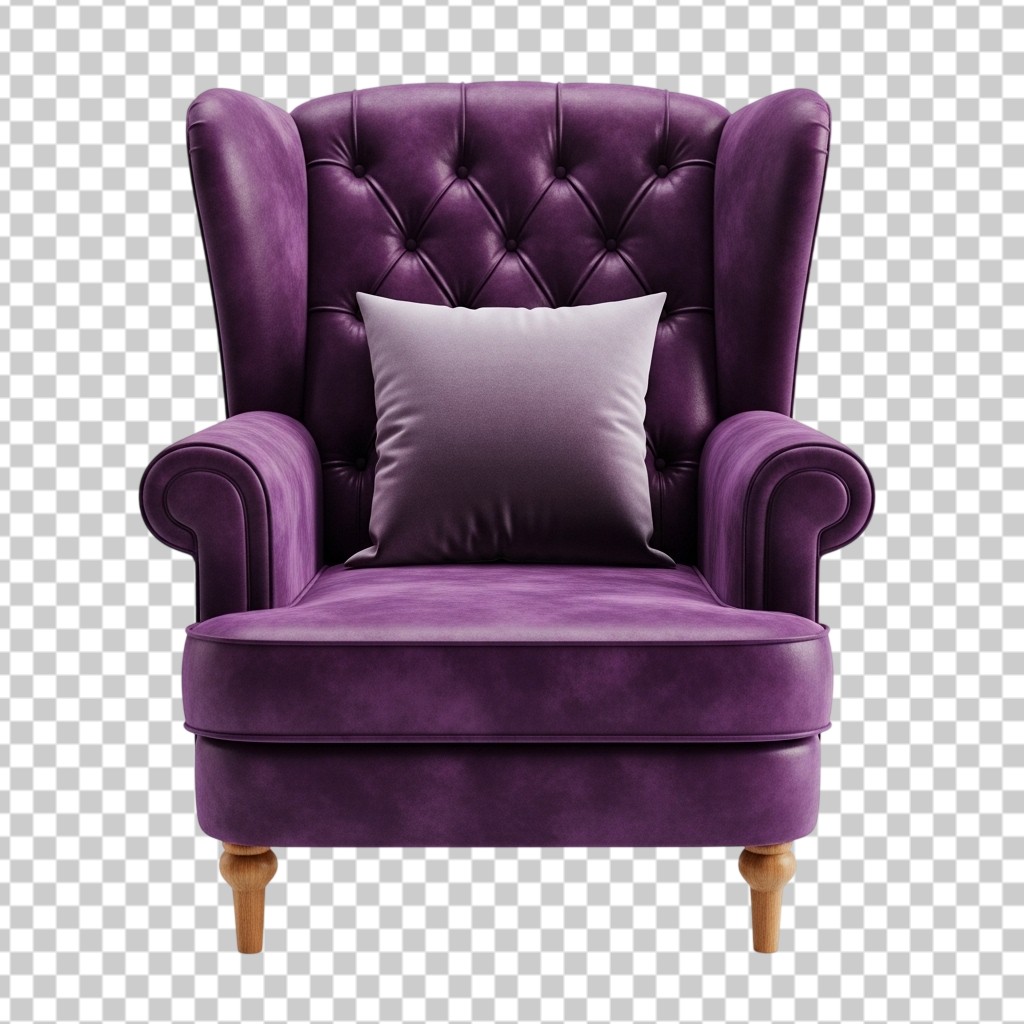 Elegant Purple Velvet Armchair with Pillow PNG Transparent Background