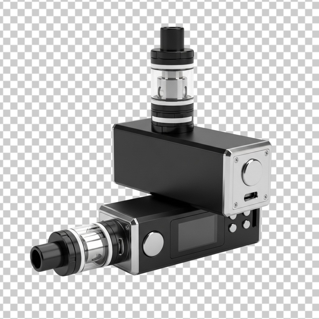 Set of Modern Black Electronic Cigarette Vape Devices PNG Transparent Background