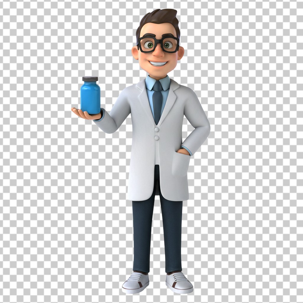 Professional Male Doctor Holding Medicine Bottle 3D Character PNG Transparent Background
