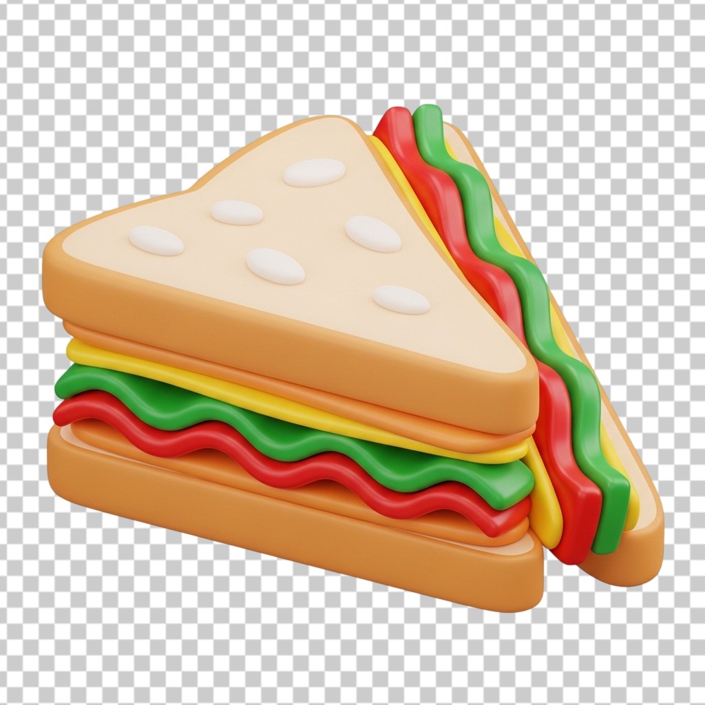 3D Gourmet Club Sandwich Slice with Fresh Layers PNG Transparent Background